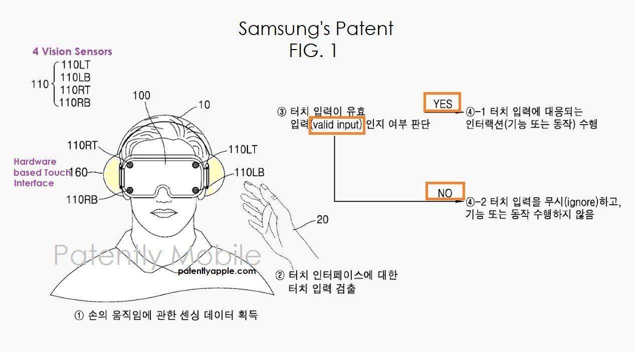 据专利描述,设备在使用过程中常会遇到意外或非用户本人的触控输入,这不仅会干扰正常使用,还可能引发安全隐患。为了解决这一问题,三星设计了一款配备视觉传感器和触控界面的增强现实设备。该设备能够利用传感器收集数据,智能判断触控输入的有效性,从而有效筛选有效输入,拒绝无效操作。